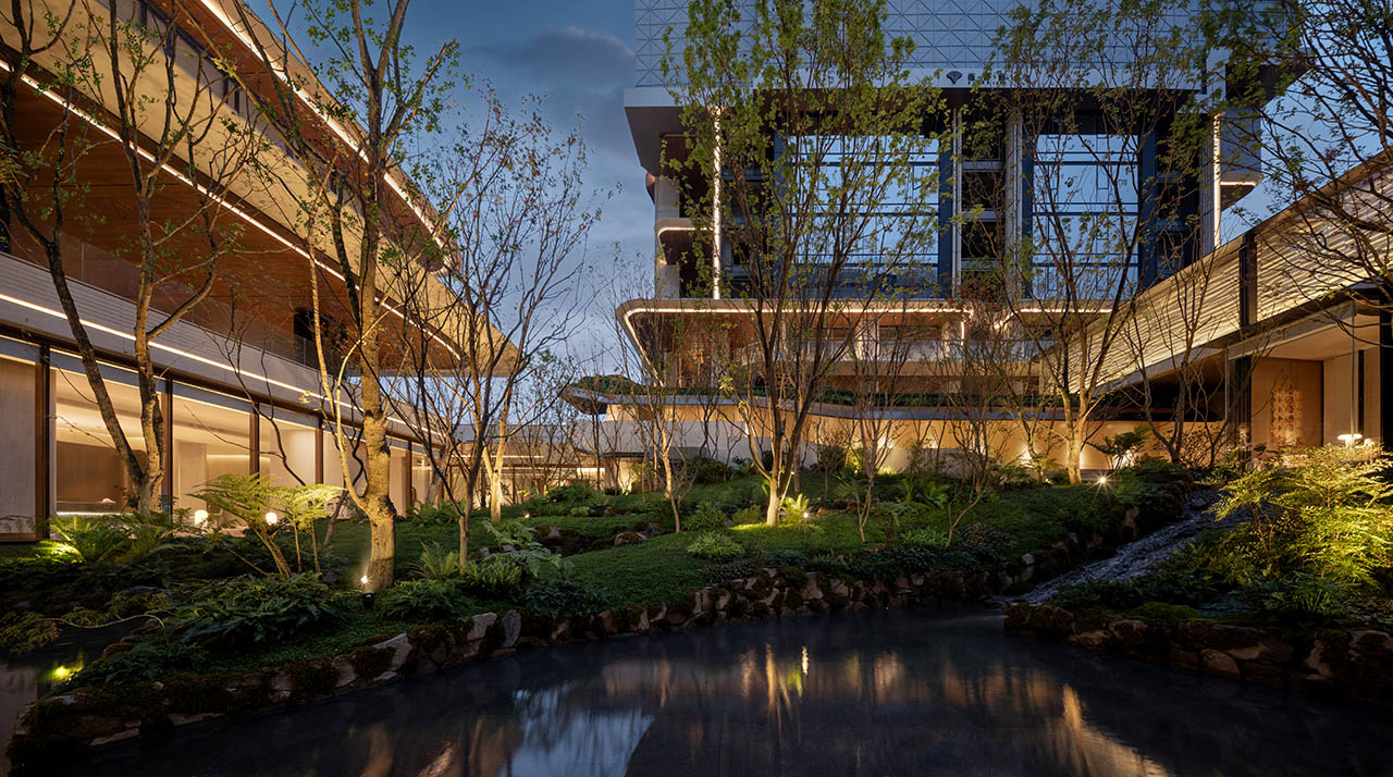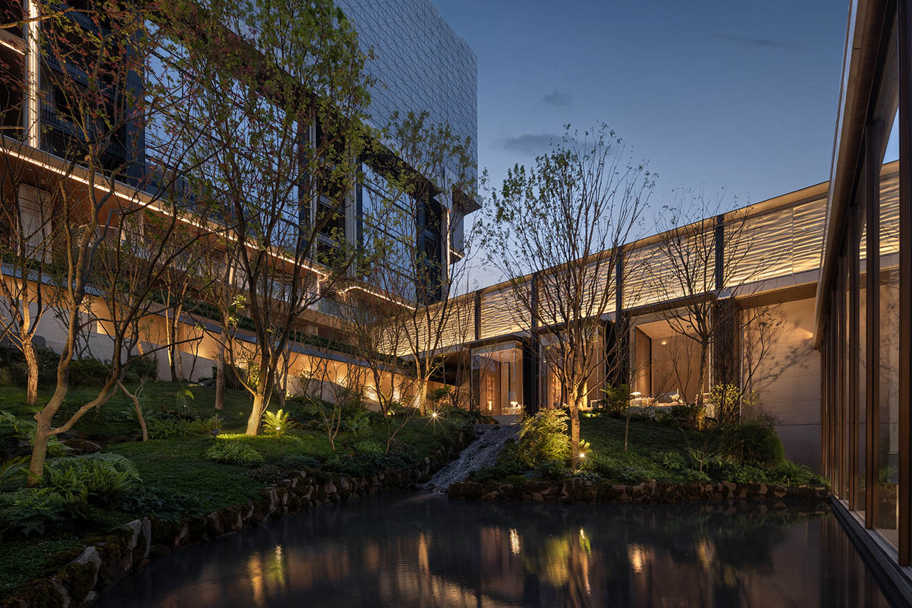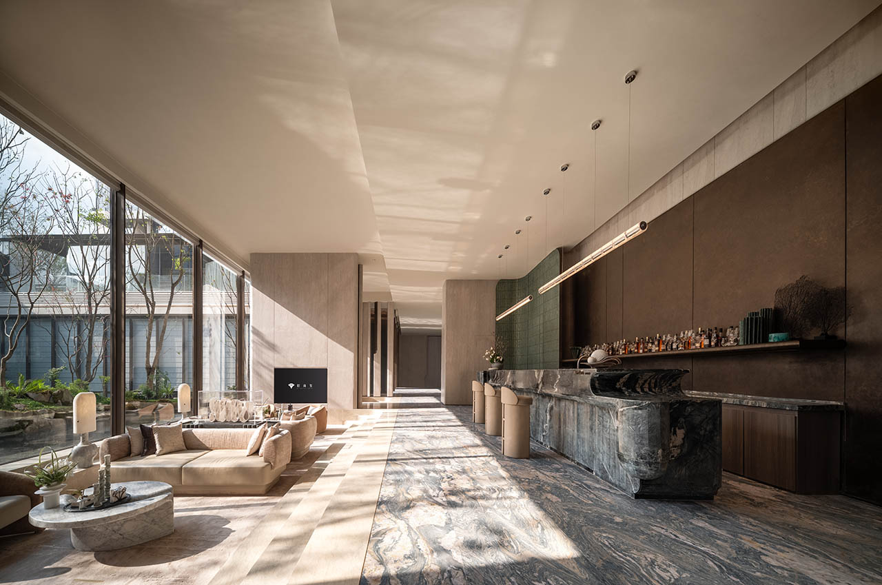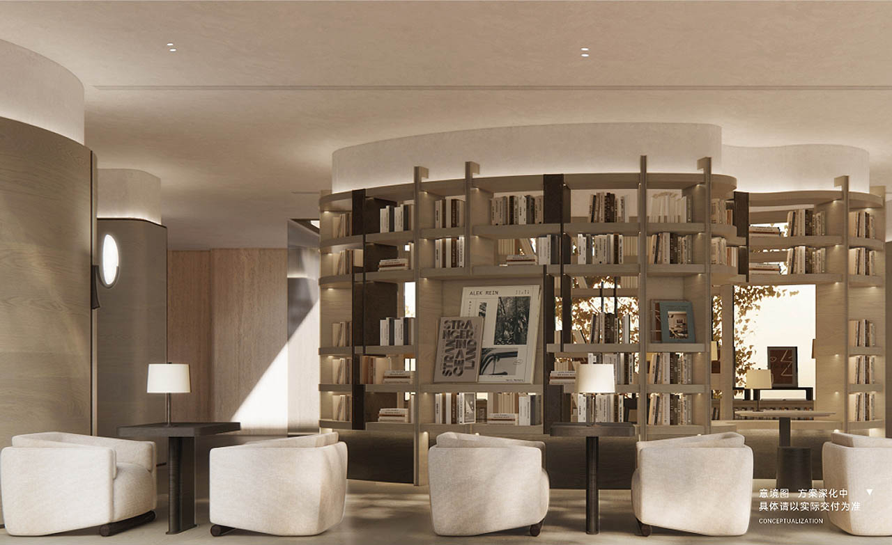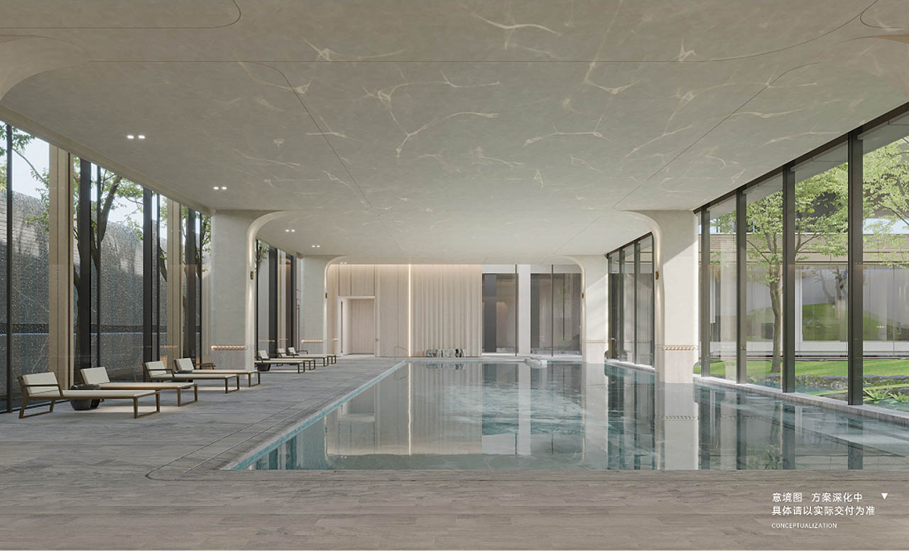 约3000㎡藏一会所,藏于其中的川西溶洞意象的SPA馆、专属私宴厅等,以及拥有双面采光和星空顶的泳池、健身房、瑜伽室、“云书集”阅读空间半私密区域,如此细致的空间哲学,是艺术生活的表达。