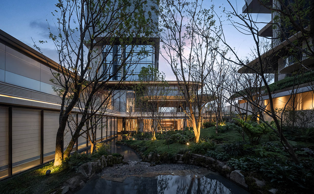 围绕“博藏哲学”为源点,巧妙采用“三显七藏”设计手法,在建筑、园林、空间规划以及会所配套中逐渐铺展,呈现了人们所向往的“大隐隐于市”的理想,更有“结庐在人境,而无车马喧”的诗情画意。