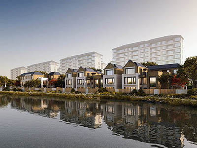 依水而建,通过约500米原生水岸、约20米宽生态河道、约180°河景,地块天赋高,本案因地制宜,结合低密度滨水区城市感的特性,打造低密静谧的藏品级联排墅区,让艺文的交流于自然中自由流淌,享自然墅体验。